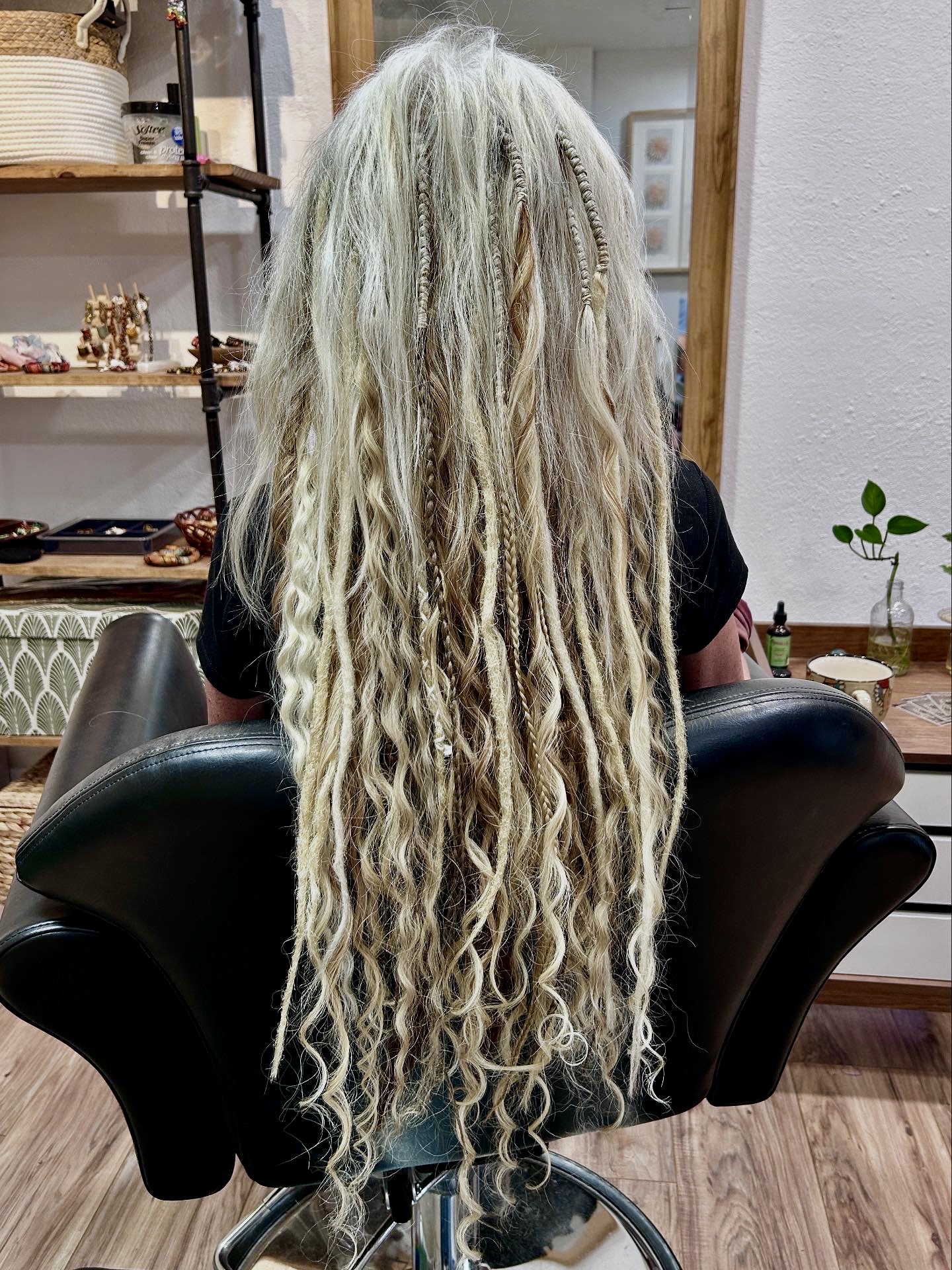 “Went for temporary dreadlock extensions, I felt comfortable quickly. Zascha is friendly and knowledgeable. Great attention to detail. My temporary dreadlocks are tight and comfortable. I am excited and more than satisfied with my hair. I chose a mix of colors and styles. The pictures just don’t show how amazing my dreadlocks are.”